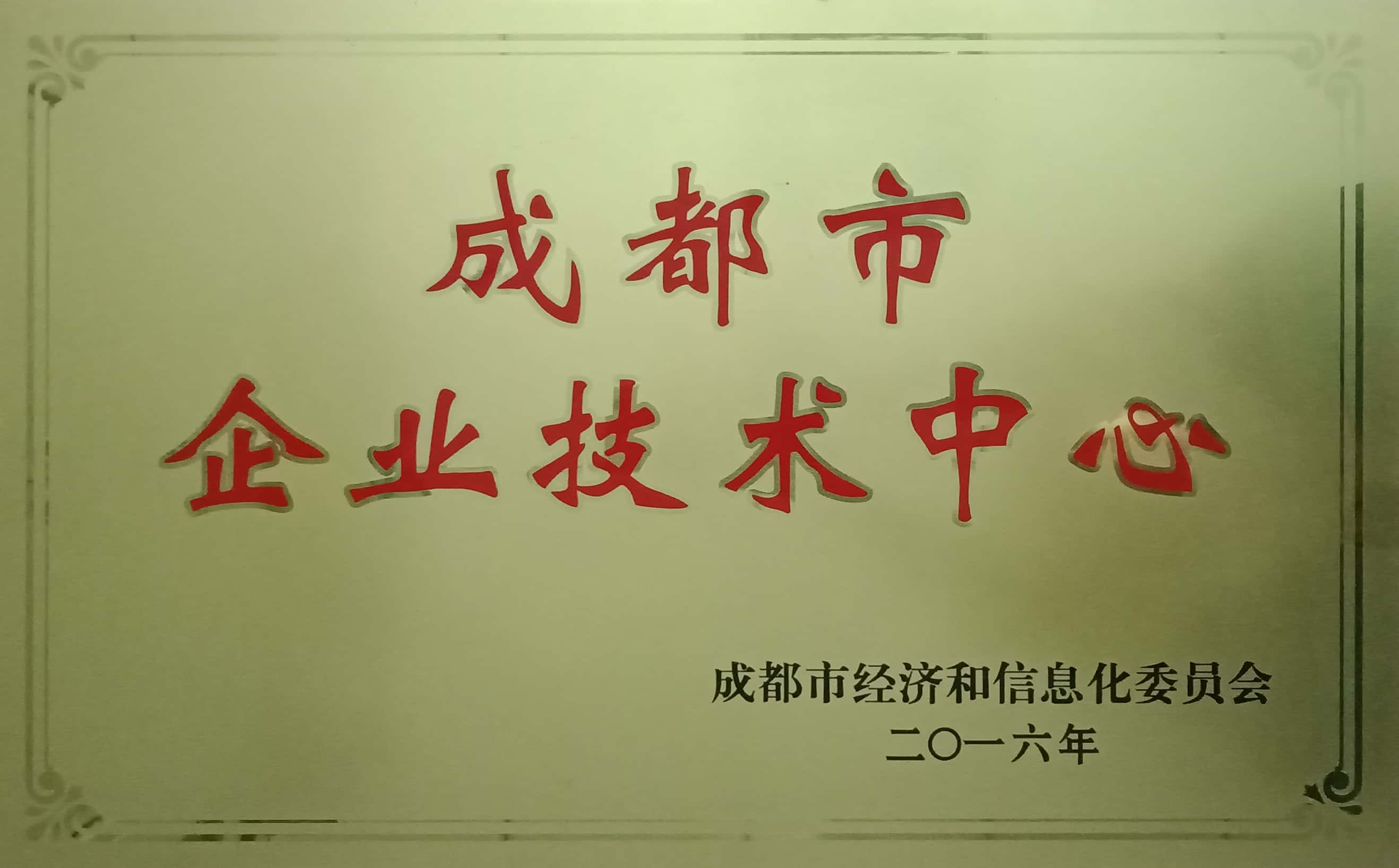 成都市企業(yè)技術(shù)中心榮譽(yù)證書(shū)